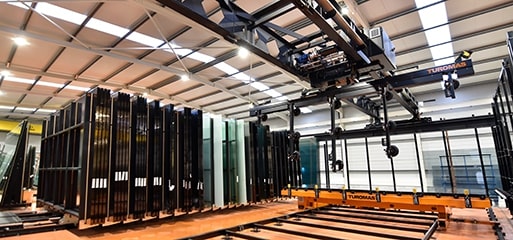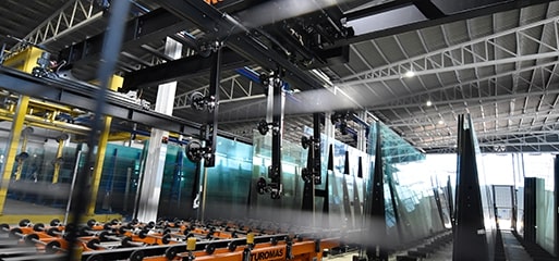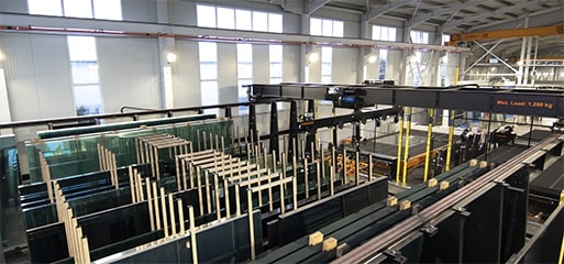 Distribución automática de vidrio dentro del almacén