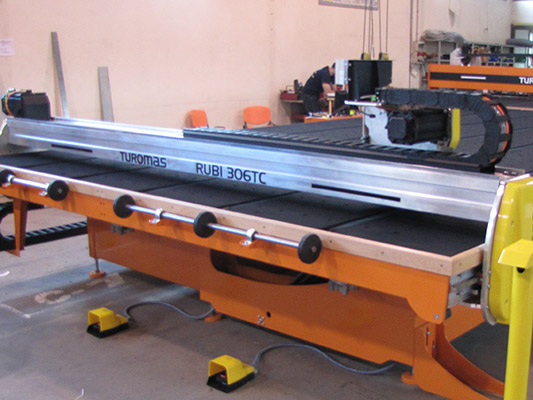 RUBI 306TC210 m/min15 m/s²1,8-25 mm (0,07”-1”)± 0,15 mm (± 0,006”)RotationsmotorenLängsKippbar/RiemenAutomatischAutomatisch6100 x 3300 mm (241” x 130”)2L + 3T4600 Kg (10141 lb)10 l/min11 kW