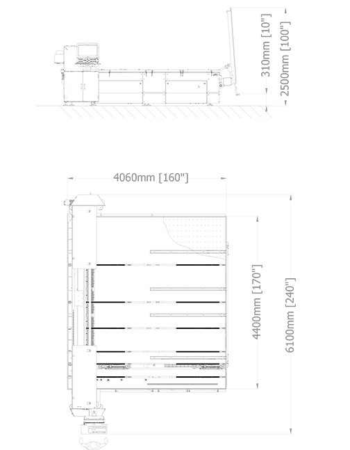 LAM 606SXR6000 mm (236")MCCBeladetisch mit Auslegern-