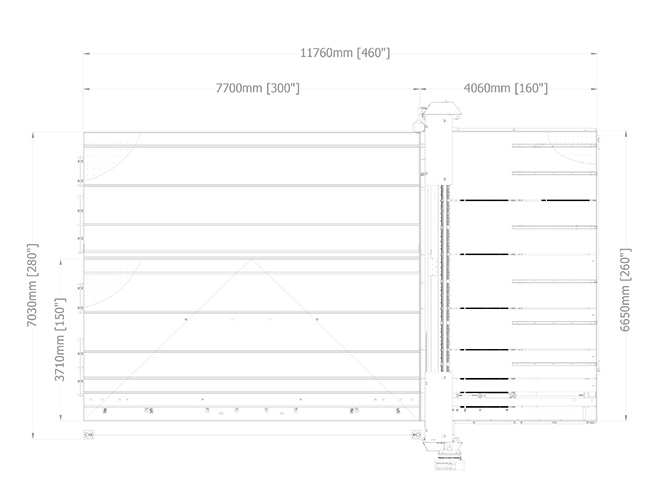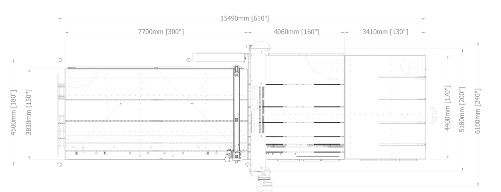 • Maximale Schnittlänge: 3.700 mm (146”) | 4.700 mm (185”) | 6.000 mm (236”)