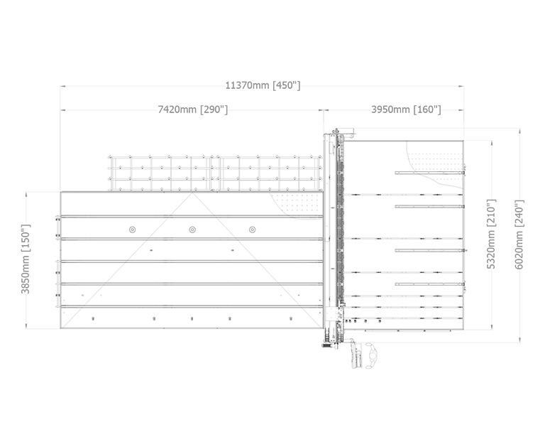 | LAM 506SXR | 6000 mm (236") | MCC | Beladetisch mit Auslegern | - |