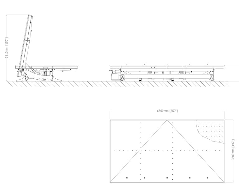 | MT-300 | 3.920 x 2.800 mm (154,3” x 110,2”) | 1.200 kg (2.645 lb) | 5 kW 9 kW | Tilting | 1Long. + 1 Trans. 1Long. + 2 Trans. | 2 3 | 920 mm +/- 45 mm (36,6” +/- 1,8”) |