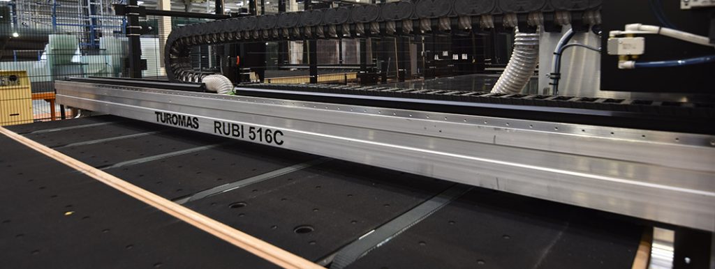 | RUBI 516AC | 310 m/min | 19 m/s² | 1,8-25mm (0,07"-1") | ± 0,10 mm (±0,004") | Rotary motors | Longitudinal | Automatic | Automatic | Automatic | 6100 x 3300 mm (241” x 130”) | No | 6000 kg (13227 lb) | 10 l/min | 11 kW |