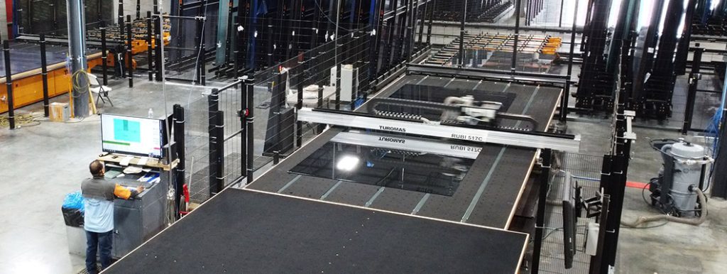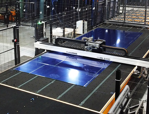 The RUBI 517C has been developed for companies requiring optimal productivity, superior precision and full automation in their processes. This machine incorporates the most advanced technology on the market, designed to meet the most demanding standards. Fully prepared for integration into automatic cutting lines, its next-generation linear motors deliver exceptional performance and consistent quality in cutting, Low-E or TPF coating removal and piece labelling operations, featuring longitudinal glass entry, automatic loading system, automatic positioning and automatic unloading, as well as a maximum cutting size of 6100 x 4000 mm.