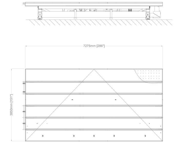 | MC-600 | 6.650 x 3.840 mm (261,8" x 151,2") | 2.800kg (6172 lb) | 7 kW | Basculante | 3 | 920mm +/- 45mm (36,6" +/- 1,8") |
