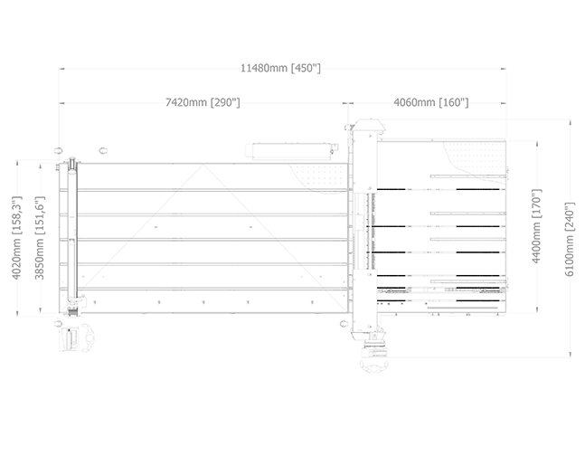 LAM 406T6000 mm (236")RUBIBraçosNa mesa de corte