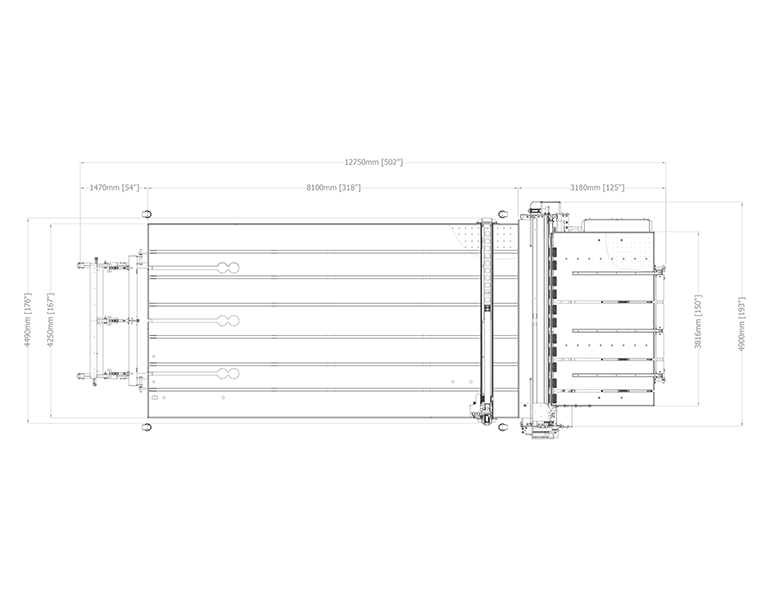 | LAM 304 | 240 mm (9.45”)* | 2500 mm (98.43”) | 0 mm | Max: 4.56 mm (0,18”) Min: 0,38 mm (0.01”) | Max: 19 mm (0,75”) Min: 2 mm (0,08”) | OK | 120 mm (4.72”) | 120 mm (4.72”) | 3 (450 kg - 992 lb)) | ± 0.5 mm (± 0.02”) | 3300 kg (7275 lb) | 15 kW | 110 l/min |