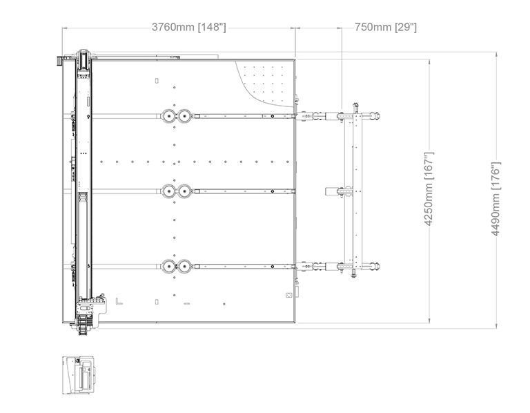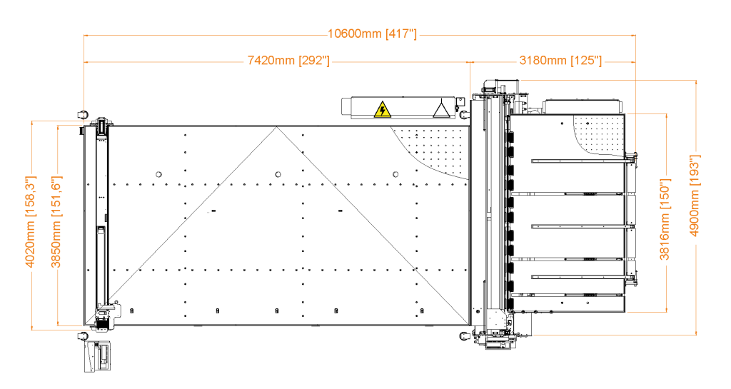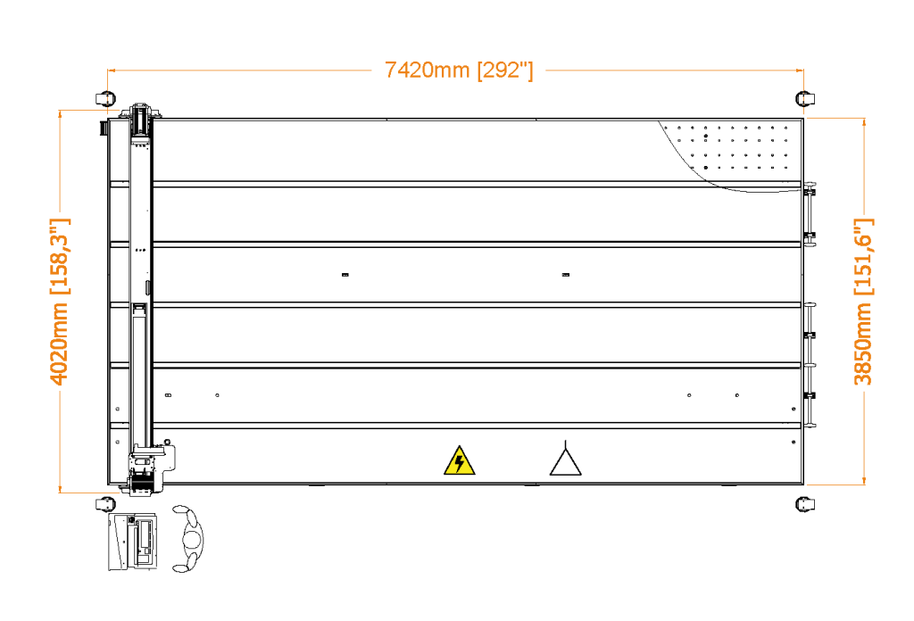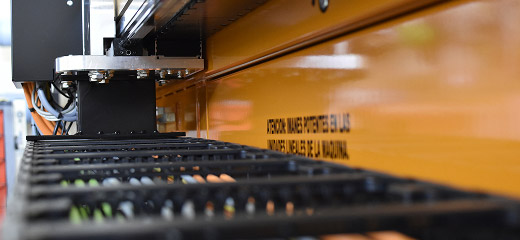 | RUBI 203T | 180 m/min | 13 m/s² | 1,8-19 mm (0,07”-0,75”) | ± 0,20 mm (± 0,008”) | Motores rotativos | Longitudinal | Basculante | Manual | Manual | 3700 x 2600 mm (146” x 103”) | 1L + 2T | 2100 Kg (4629 lb) | 10 l/min | 6 kW |