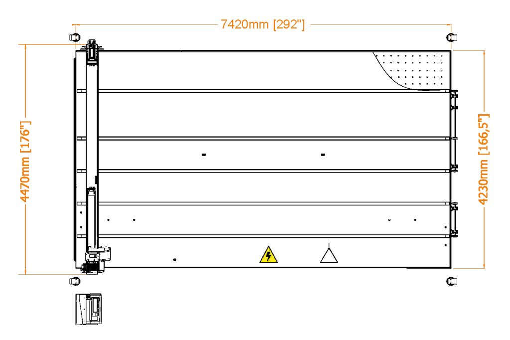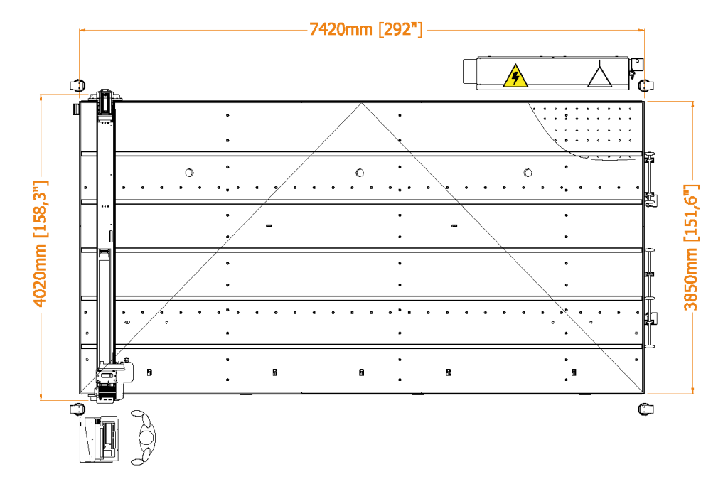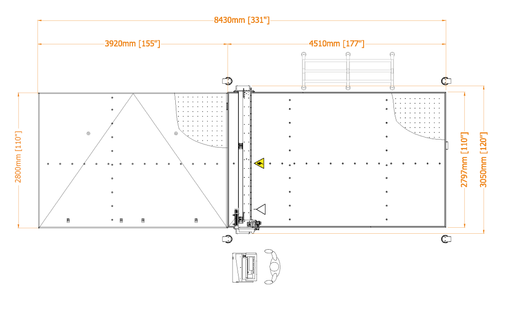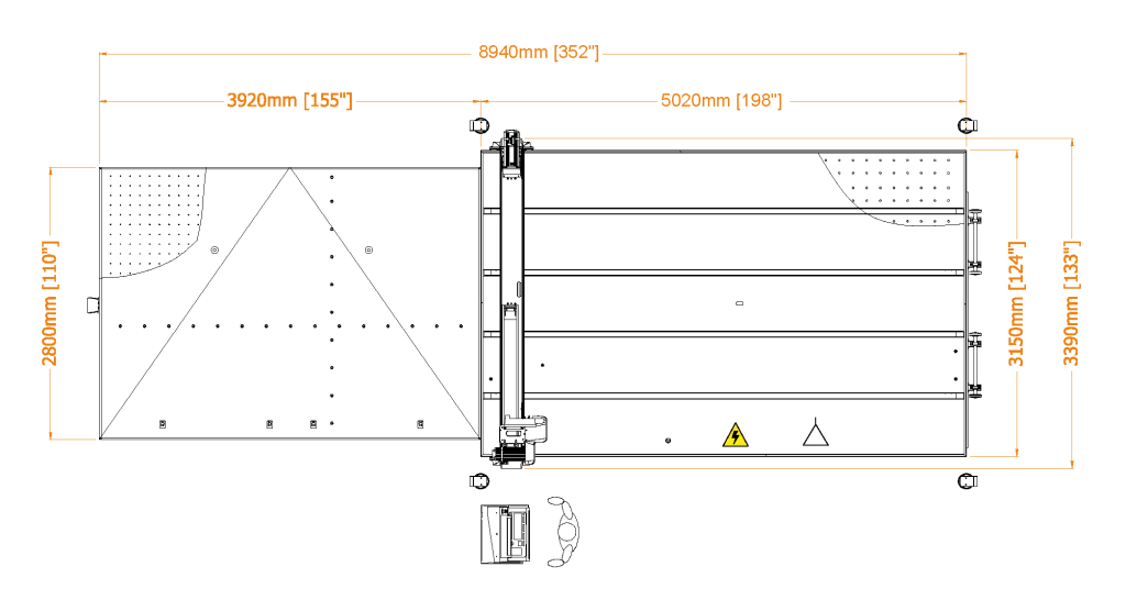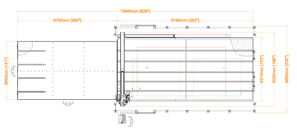 | RUBI | V max | A max | Espessura do vidro | Precisão | Sistema de tração | Entrada | Carga | Posicionamento | Evacuação | Corte útil máximo | Cortadores | Peso | Consumo de ar | Consumo |