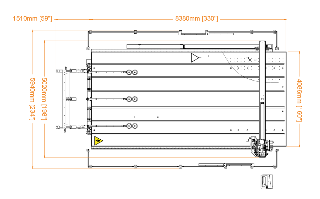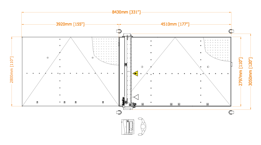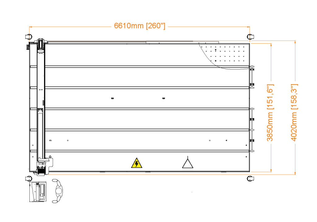 | RUBI 203 | 180 m/min | 13 m/s² | 1,8-19 mm (0,07”-0,75”) | ± 0,20 mm (± 0,008”) | Motores rotativos | Longitudinal | Queda Livre/Fixa | Manual | Manual | 3700 x 2600 mm (146” x 103”) | 1L + 2T | 2100 Kg (4629 lb) | 10 l/min | 6 kW |
