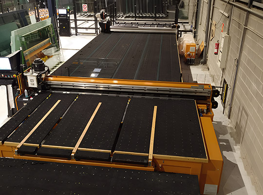 A RUBI 303C está orientada para empresas que procuram uma máquina de corte versátil e eficiente. Disponíveis tanto para vidro Jumbo como para folha padrão, podem trabalhar de forma autónoma ou integradas numa linha de corte em conjunto com alimentadores automáticos, mesas de carga e mesas de corte de vidro, incorporando um sistema de carga por correias que permite uma manipulação fluida e contínua do vidro.