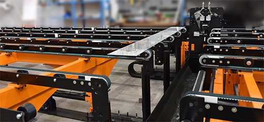 El sistema automático de tronzado TA-6XY realiza el tronzado de hojas o cortes transversales mediante la acción combinada de un regle longitudinal inferior y una sujeción superior puntual, permitiendo además cortes en los ejes X e Y con total precisión. Garantiza bordes de alta calidad y un ritmo constante para mantener el flujo continuo en la línea de corte. El posicionamiento del vidrio se efectúa automáticamente mediante correas antideslizantes, accionadas por un motor central controlado por un variador de frecuencia para asegurar la máxima precisión.